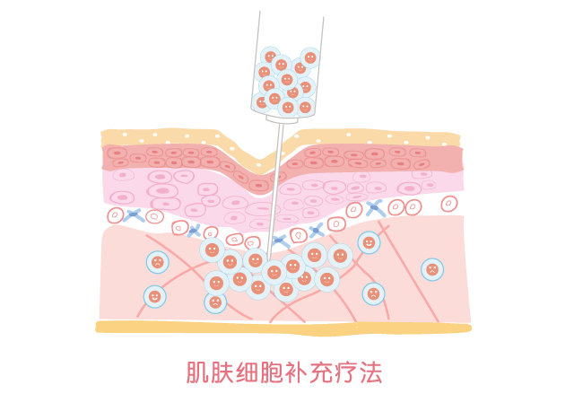 注入皮肤真皮组织的细胞(纤维芽细胞)有促进胶原蛋白等皮肤组织的生成、强化真皮层的厚度和弹性,从而改善皮肤表面的凹凸现象。